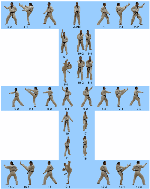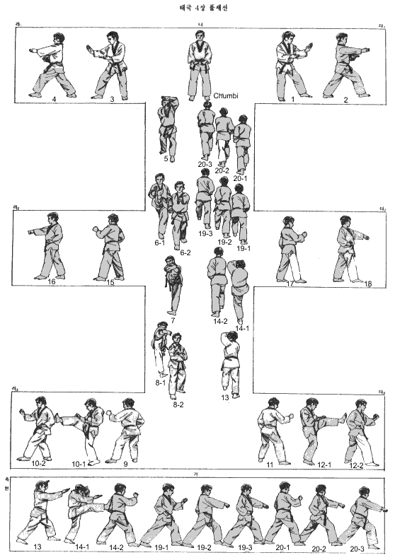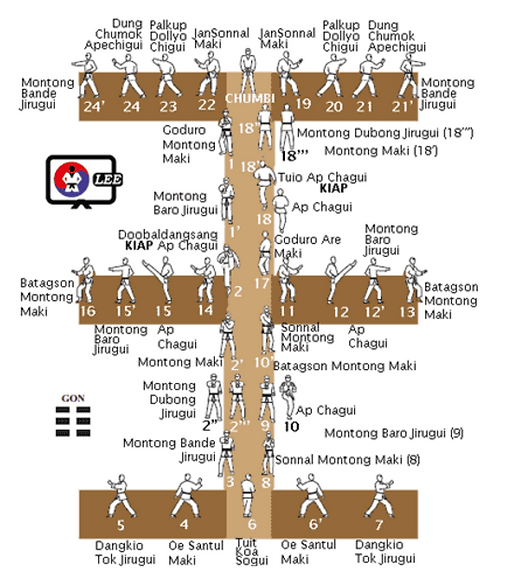 Este es el último de los 8 Poomsae Taeguk, con el cual los aprendices pueden acceder a experimentar la prueba de promoción a 1er Dan/Poom.